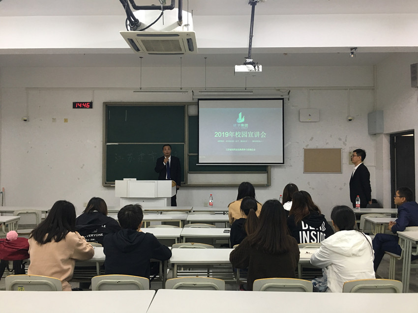 10月25日下午,集團公司在南京審計大學敏知樓103室舉行了一堂生動的企業(yè)宣講會。集團副總經(jīng)理張幫華、辦公室主任張瑩等相關領導、老師和學生們出席活動。