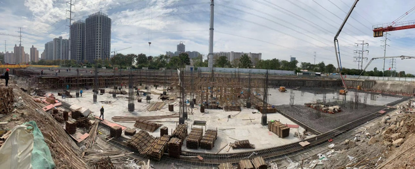 南京分公司江蘇智慧城市地下空間產(chǎn)業(yè)園項(xiàng)目從2019年8月1日開工至今,克服了項(xiàng)目現(xiàn)場周邊城市道路施工、區(qū)域管理白天不可出土、設(shè)計(jì)圖紙錯(cuò)漏較多反饋不及時(shí)、現(xiàn)場混凝土施工混凝土供貨不及時(shí)等諸多困難,截至目前,已按時(shí)按量根據(jù)項(xiàng)目前期定下的各項(xiàng)節(jié)點(diǎn)完成了地庫南區(qū)地下室底板澆筑,5#樓周邊地庫頂板模板支架搭設(shè)等工作。