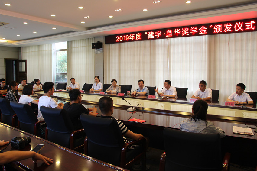 黃仁云校長代表學(xué)校發(fā)表了熱情講話,對建宇集團(tuán)連續(xù)多年在高郵中學(xué)頒發(fā)建宇?皇華獎助學(xué)金表達(dá)了感謝和尊敬,同時對莘莘學(xué)子提出了追求“五業(yè)”的希望。儀式上,學(xué)生們認(rèn)真觀看了建宇集團(tuán)宣傳片,辦公室劉益成講解了建宇皇華獎助和人才培養(yǎng)計劃的PPT。與會領(lǐng)導(dǎo)共同為20名品學(xué)兼優(yōu)的建筑專業(yè)的同學(xué)們發(fā)放了獎學(xué)金。獲獎學(xué)生對學(xué)校和建宇集團(tuán)的關(guān)心和培養(yǎng)紛紛表達(dá)了感謝。尤其對集團(tuán)有針對性的新生培養(yǎng)計劃,從第一年的輪崗實習(xí)、因材施教,到第二年的內(nèi)部競聘、述職考核,直至最后的高管一帶一表達(dá)了濃厚的興趣。
