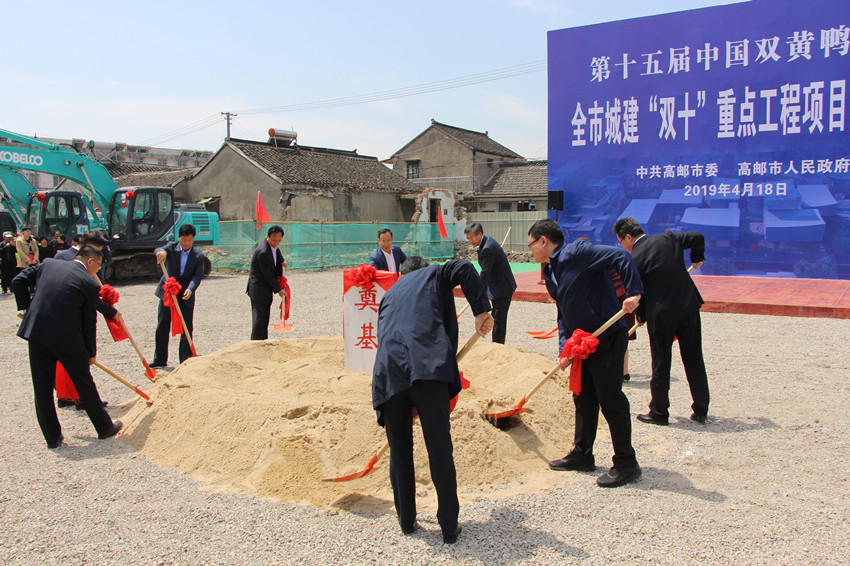 4月18日上午,高郵市委、市政府在集團高郵分公司承建的汪曾祺紀念館項目現場舉行第十五屆中國雙黃鴨蛋節(jié)城建“雙十”重點工程項目集中開工儀式。市領導勾鳳誠、張秋紅、趙廣華、潘建奇、吳惠山、李生、傅曉、張擁軍等出席并為項目開工奠基培土,集團董事長管民良、副總經理黃益寶、高郵分公司經理王迎平等作為施工企業(yè)代表參加儀式。