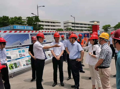 6月28日上午,南京市委常委、江北新區(qū)黨工委專職副書記羅群視察集團(tuán)承建的國際化名醫(yī)中心項目,并督導(dǎo)安全生產(chǎn)工作。新區(qū)中央商務(wù)區(qū)主任陳建鵬、新區(qū)建設(shè)與交通局長許蕾等部門負(fù)責(zé)人隨同檢查,集團(tuán)董事長管民良、副總經(jīng)理張幫華等在項目現(xiàn)場陪同。