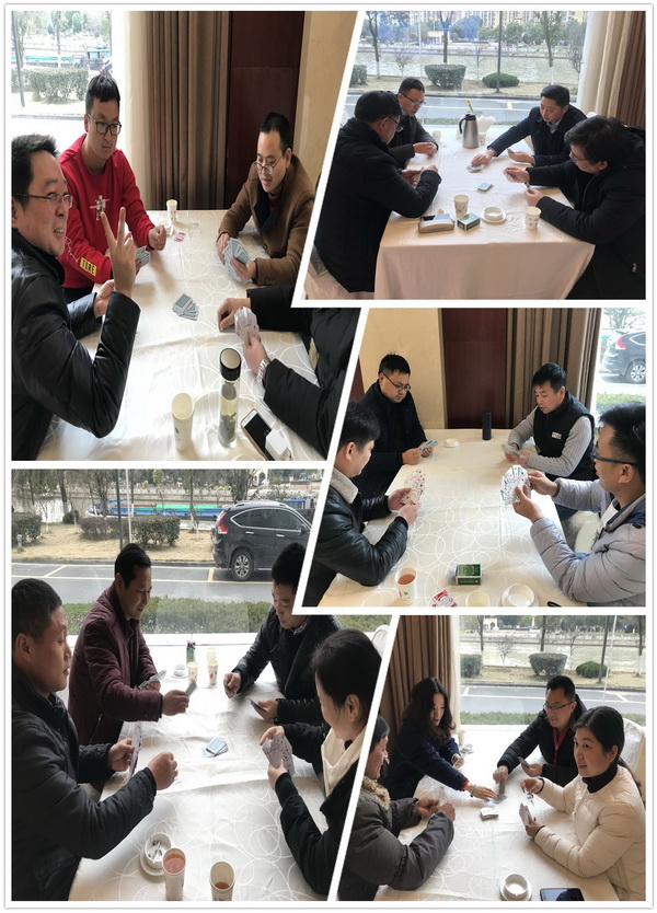 乒乓球緊張比賽的同時(shí),摜蛋比賽同時(shí)熱鬧進(jìn)行,本次摜蛋比賽采取循環(huán)淘汰賽模式,比賽現(xiàn)場(chǎng),公司領(lǐng)導(dǎo)、中層干部和普通員工同臺(tái)競(jìng)技,賽場(chǎng)上的氣氛十分活躍。選手們密切配合,沉著應(yīng)戰(zhàn),對(duì)陣雙方比牌技、比智慧,賽成績(jī)、賽友誼。大家切磋牌技、互相交流,增進(jìn)了友誼。經(jīng)過激烈的爭(zhēng)奪和層層淘汰,工程部的黎健和周軍同志奪得冠軍。