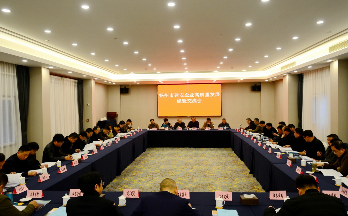 近日,揚(yáng)州市建安企業(yè)高質(zhì)量發(fā)展經(jīng)驗(yàn)交流會(huì)在揚(yáng)州舉行,總結(jié)2018年揚(yáng)州建安企業(yè)在高質(zhì)量發(fā)展中取得的成績(jī)。各縣市區(qū)重點(diǎn)企業(yè)的主要負(fù)責(zé)人、協(xié)會(huì)會(huì)長(zhǎng)、秘書長(zhǎng)50余人參加了會(huì)議。揚(yáng)州市建筑行業(yè)協(xié)會(huì)任壽松會(huì)長(zhǎng)主持會(huì)議,集團(tuán)董事長(zhǎng)管民良在會(huì)上交流講話。