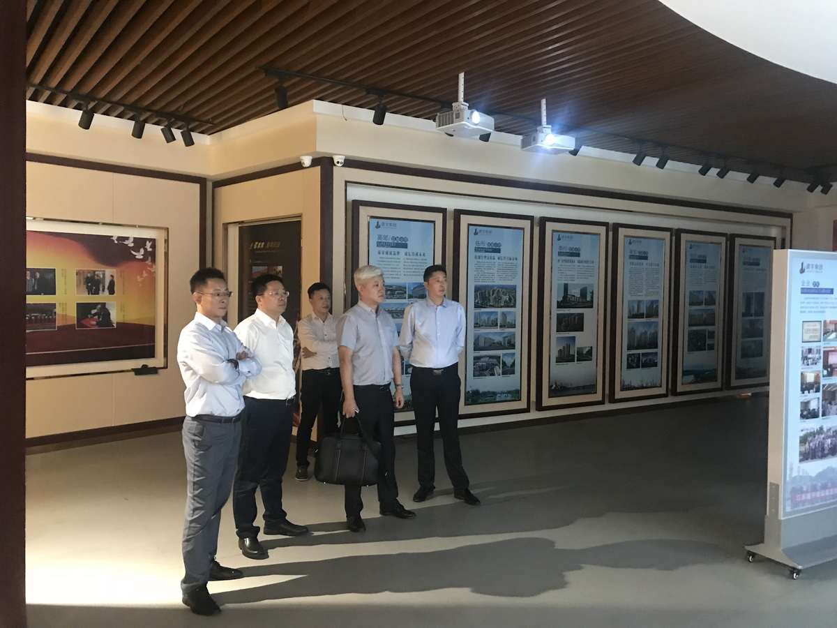 考察團(tuán)一員首先參觀了集團(tuán)公司的辦公區(qū),董事長管民良介紹了建宇大廈的地理優(yōu)勢及高郵東部新城的發(fā)展,隨后在大廈十二樓接待室舉行了座談會,董事長介紹了集團(tuán)的基本情況,發(fā)展理念,市場布局,運營質(zhì)態(tài)及近年來獲得的榮譽,重點闡述了集團(tuán)在市場開拓、全程管理、品牌發(fā)展三個方面明顯區(qū)別并領(lǐng)先于同行業(yè)的三個法寶。 座談會結(jié)束后,客人參觀了集團(tuán)展示廳,聽取了集團(tuán)公司各個板塊的介紹,并觀看了集團(tuán)宣傳片——建宇筑天下。