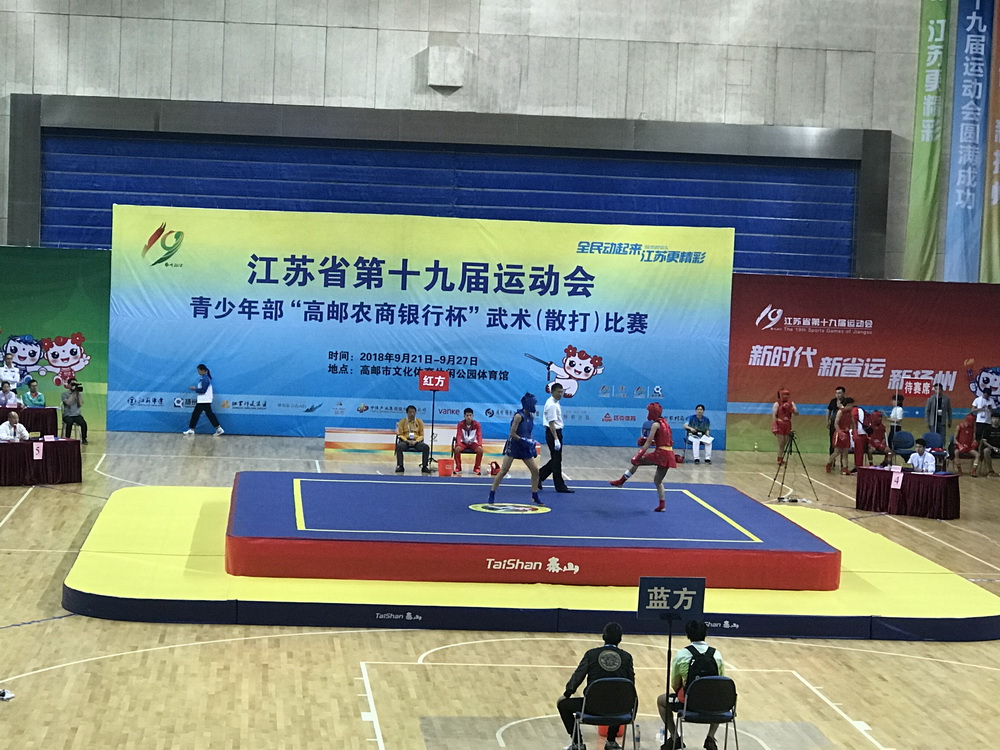 參賽的隊員們在賽場上“遠則拳打腳踢,近則貼身快摔”。技巧打法都充分展示了中國武術的精湛技藝,小伙子小姑娘們個個都精神飽滿,每招每式都力求做到穩(wěn)、準、狠,充分展現(xiàn)了運動員們的拼搏精神??磁_上也熱鬧非凡,加油聲喝彩聲此起彼伏,大家暫時放下工作和煩惱,隨意而輕松的坐在場中觀看比賽,享受著四年一度的省運會盛宴。第十九屆省運會是揚州改革開放以來承辦的規(guī)模最大、持續(xù)時間最長、參與人數(shù)最多的重大活動,與往屆省運會散打比賽相比,本次比賽在人數(shù)、規(guī)格、范圍上有了較大突破,增添了新亮點、新魅力。各大高校大學生和武術愛好者積極參與。