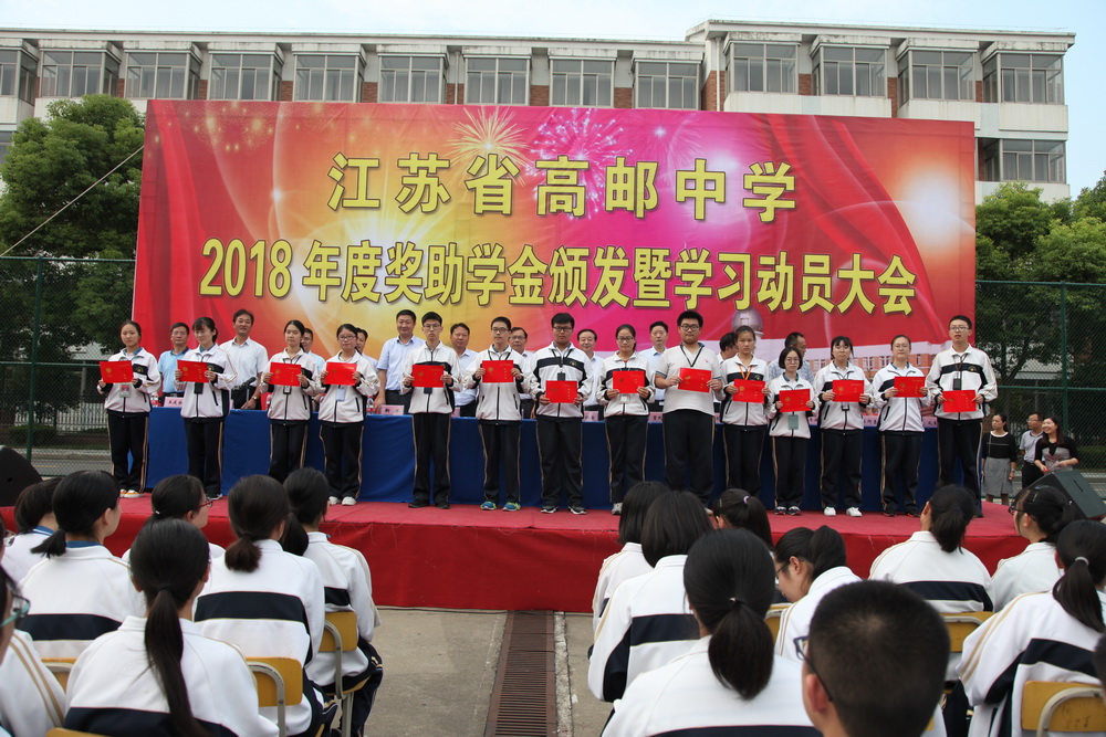 中秋前夕, 高郵中學(xué)隆重舉行2018年度獎(jiǎng)助學(xué)金頒發(fā)暨學(xué)習(xí)動(dòng)員大會(huì)。董事長(zhǎng)管民良出席大會(huì),向莘莘學(xué)子頒發(fā)了建宇皇華獎(jiǎng)助學(xué)金。高郵中學(xué)校長(zhǎng)、黨委書記黃仁云等全體校領(lǐng)導(dǎo)出席表彰大會(huì)。