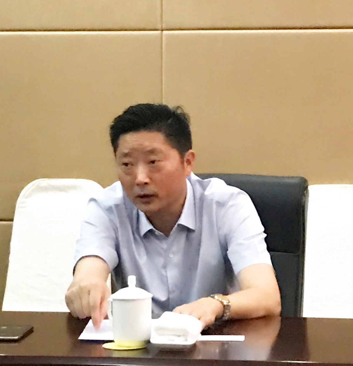 8月5日上午,宇業(yè)集團(tuán)投資總監(jiān)胡浩等一行4人蒞臨集團(tuán)考察,董事長管民良、總經(jīng)理管民祥、副總經(jīng)理黃益寶等接待了考察團(tuán)一行。