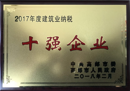 作為高郵市建筑業(yè)主力軍,我公司連續(xù)多年被評為納稅先進企業(yè),納稅先進的評定是用納稅額說話,是最具含金量的。去年,我公司緊緊圍繞公司的戰(zhàn)略目標,面對低迷的建筑市場,我公司團結奮進,爭先進位,各項經(jīng)濟指標穩(wěn)中有升,在高郵市建筑業(yè)納稅名列第四,在揚州市納稅也取得了較好的名次。
