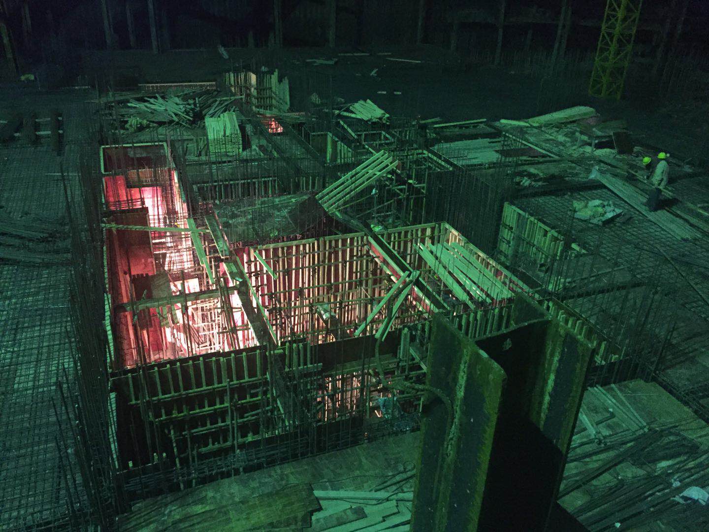 為配合甲方銷售節(jié)點(diǎn)的實(shí)現(xiàn),1號(hào)樓從2018年2月3日再次沖鋒——負(fù)二層結(jié)構(gòu)開始施工,必須在2月12日(臘月二十七)前砼澆筑完畢。1號(hào)樓主樓地庫,單層面積3200平方米,負(fù)二層結(jié)構(gòu)框架柱最大截面尺寸達(dá)1200mm*1700mm,梁最大截面尺寸達(dá)750mm*950mm,且該區(qū)域全部為人防口部,剪力墻多,施工任務(wù)重、難度大。如按照正常的施工程序,如此大面積的人防地庫需要20天左右?,F(xiàn)又是春節(jié)臨近,材料、人員嚴(yán)重匱乏,同時(shí)又要在原有工期上縮短一半,難度可想而知。這個(gè)重任落在了勞務(wù)經(jīng)理任永艮項(xiàng)目部,他們積極服從南京公司大局,抽調(diào)精兵強(qiáng)將支援,交叉作業(yè)、平行施工、見縫插針、輪班作業(yè),能用的招都用上,力爭(zhēng)打響攻堅(jiān)大會(huì)戰(zhàn)。