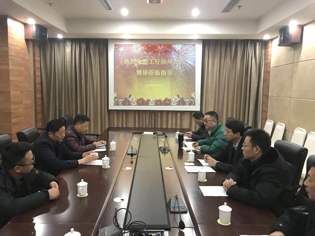 近日,中國工商銀行揚州分行張濤副行長、公司業(yè)務(wù)部總經(jīng)理郭超等一行5人蒞臨集團考察調(diào)研,董事長管民良、財務(wù)總監(jiān)郭正基等接待了考察團一行,并就加強銀企合作進(jìn)行了座談交流。
