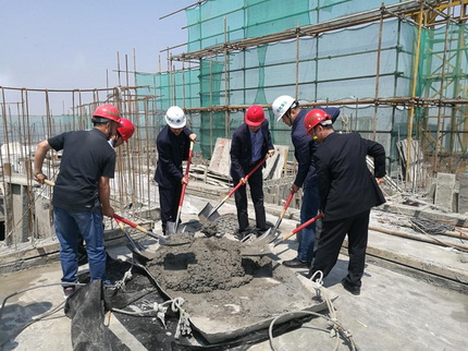 綠地泰州世紀城項目是揚州分公司繼上市公司蘇高新地產(chǎn)名澤園項目后,與世界500強綠地集團合作的又一新力作。封頂儀式現(xiàn)場,項目建設(shè)方夏超總經(jīng)理對我公司在項目施工中所展現(xiàn)出來的一流的管理、精湛的技術(shù)表示了贊賞及充分的肯定,同時表達了有更多的機會和建宇合作的良好愿望,讓建宇鐵軍風采在市場得到充分的展現(xiàn)!