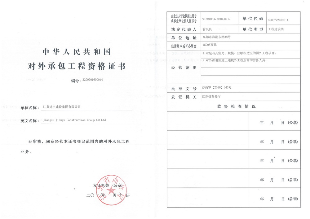 為響應省政府加快推進全省建筑企業(yè)“走出去”的發(fā)展戰(zhàn)略,搶抓“一帶一路”的建設(shè)重大機遇,集團公司申報了“對外承包工程經(jīng)營資格證書”并于