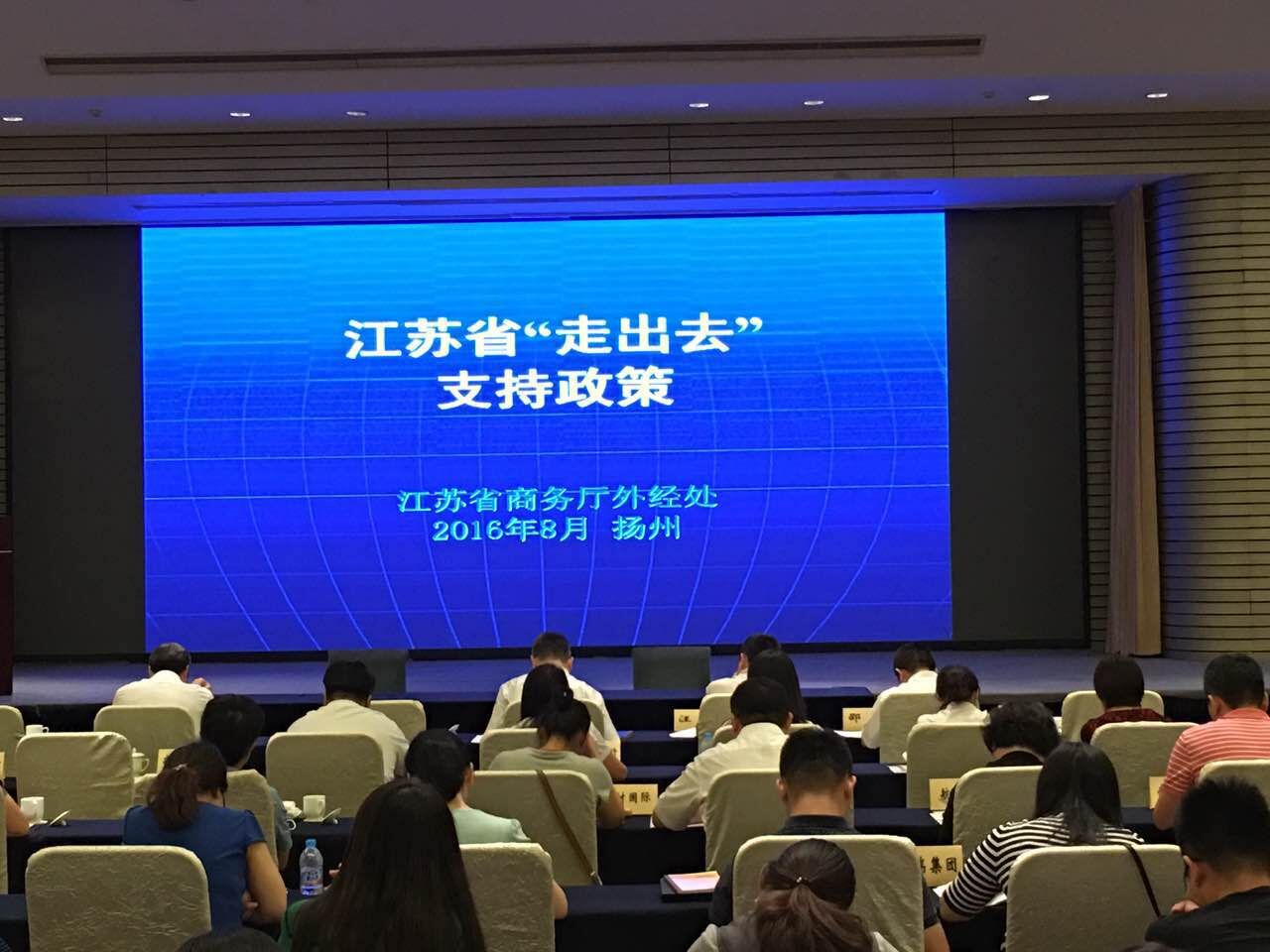 近日,由省商務(wù)廳組織中國出口信用保險(xiǎn)公司江蘇分公司、省金融辦、省財(cái)政廳、省建行共同舉辦主題為《發(fā)揮信保作用 服務(wù)“一帶一路”》的“走出去”全省首場政策發(fā)布會(huì)在揚(yáng)州迎賓館召開。全省60多家優(yōu)質(zhì)外經(jīng)企業(yè)參加,我公司作為新批外經(jīng)資質(zhì)企業(yè)參加此次會(huì)議。