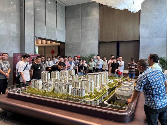 隨后,觀摩團(tuán)一行參觀了天賦星辰項(xiàng)目售樓中心,在華麗大氣的銷售中心大廳沙盤區(qū)域,聽取了天賦星辰項(xiàng)目設(shè)計(jì)理念、區(qū)位優(yōu)勢(shì)、推進(jìn)速度、政策優(yōu)惠等相關(guān)介紹。
