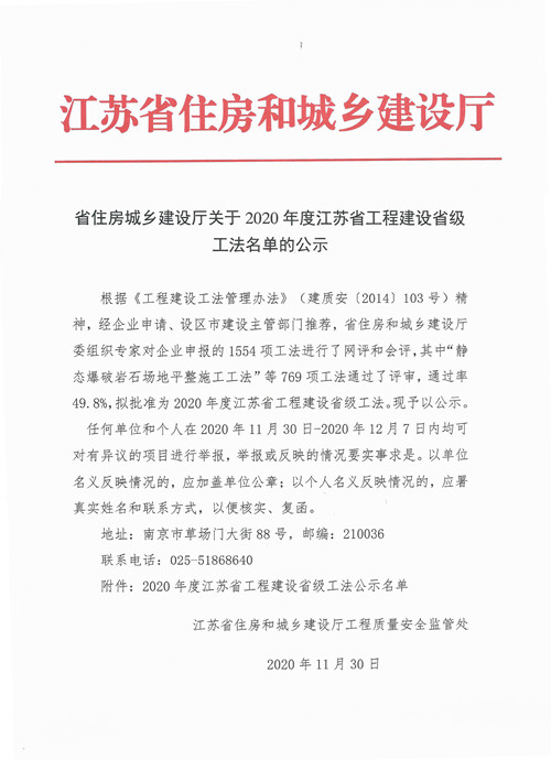 工法是企業(yè)標準的重要組成部分,是衡量企業(yè)技術(shù)水平和施工能力的重要標志,省級工法則是代表了江蘇省施工工藝標準的最高水平。獲此榮譽,不僅是集團科技研發(fā)水平的體現(xiàn),更是先進施工方法的積累,提高了公司的行業(yè)影響力,對工程的施工和質(zhì)量管理也起到了促進作用。
