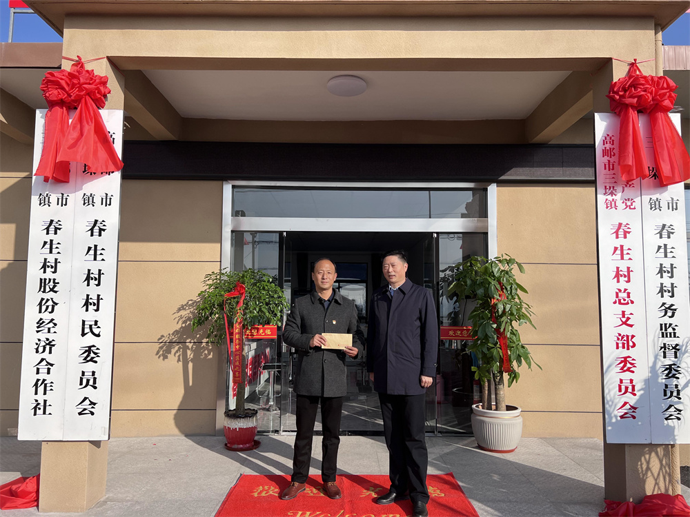 12月11日上午,集團(tuán)結(jié)對(duì)幫扶村——高郵市三垛鎮(zhèn)春生村舉行黨群服務(wù)中心落成及揭牌儀式。三垛鎮(zhèn)黨委書(shū)記趙小山、幫扶機(jī)關(guān)單位市統(tǒng)計(jì)局局長(zhǎng)陳東輝、幫扶企業(yè)集團(tuán)董事長(zhǎng)管民良等相關(guān)領(lǐng)導(dǎo)應(yīng)邀出席儀式。