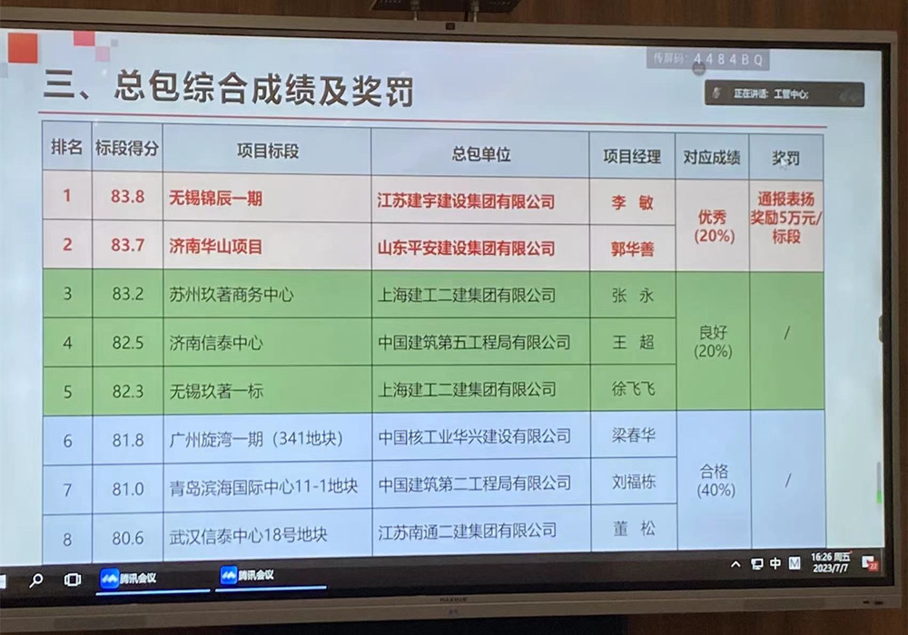 錦辰項(xiàng)目在中信泰富地產(chǎn)全國(guó)評(píng)比,多次取得較好成績(jī),受到了主管部門、甲方、第三方咨詢機(jī)構(gòu)的好評(píng)。本次2023年第二輪工程評(píng)估中榮獲第一名的好成績(jī),并獲獎(jiǎng)勵(lì)5萬(wàn)元,又一次證明集團(tuán)綜合實(shí)力和項(xiàng)目管理能力。