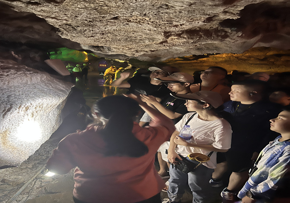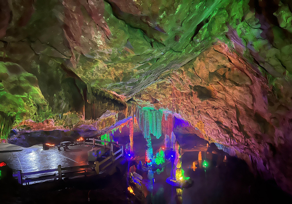 洞內(nèi)冬暖夏涼,正是夏日避暑的好去處。旱洞內(nèi)光影變幻、奇景不斷,鐘乳奇石造型各異。水洞內(nèi)石景同樣瑰麗神秘、如夢如幻,乘坐小船穿行其中,別有一番趣味。這里既有石的莊嚴,又有水的靈動,讓人流連忘返。