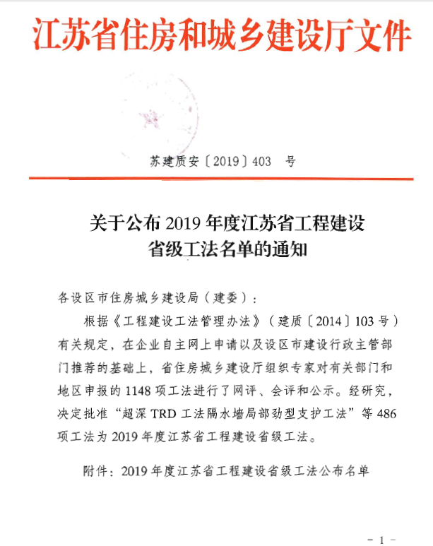 工法是企業(yè)標(biāo)準(zhǔn)的重要組成部分,是衡量企業(yè)技術(shù)水平和施工能力的重要標(biāo)志,省級工法則是代表了江蘇省施工工藝標(biāo)準(zhǔn)的最高水平。集團(tuán)各分公司堅(jiān)持以技術(shù)創(chuàng)新引領(lǐng)核心競爭力提升,深入開展施工管理創(chuàng)新和技術(shù)創(chuàng)優(yōu)活動(dòng),集團(tuán)副總、總工程師張?zhí)焯規(guī)ьI(lǐng)工程部積極指導(dǎo),揚(yáng)州公司柏甫燕、王禮亮,南京公司周月波、周軍等同志認(rèn)真進(jìn)行工法編寫與申報(bào),為集團(tuán)再次獲此殊榮。